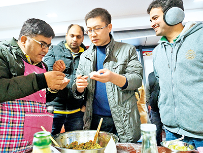 近日,浙江省紹興市上虞區組織開展在虞外籍高層次人才新春聯誼活動,組織在虞外籍高層次人才參觀上虞越窯青瓷傳習研究中心、上虞非遺展示館等,參加做青瓷、學剪紙、包餃子等活動,體驗中國傳統文化。圖為外籍高層次人才學習包餃子。