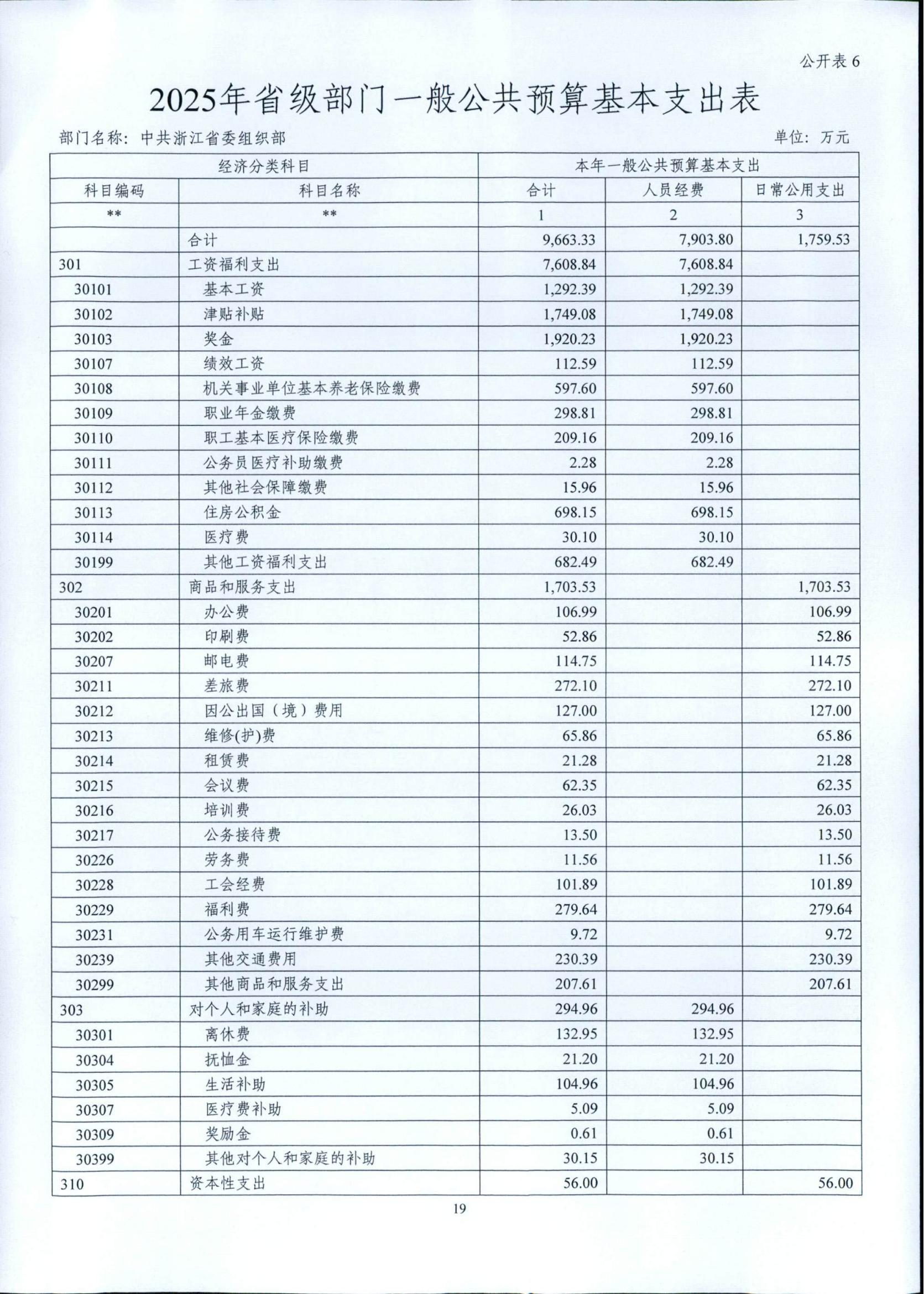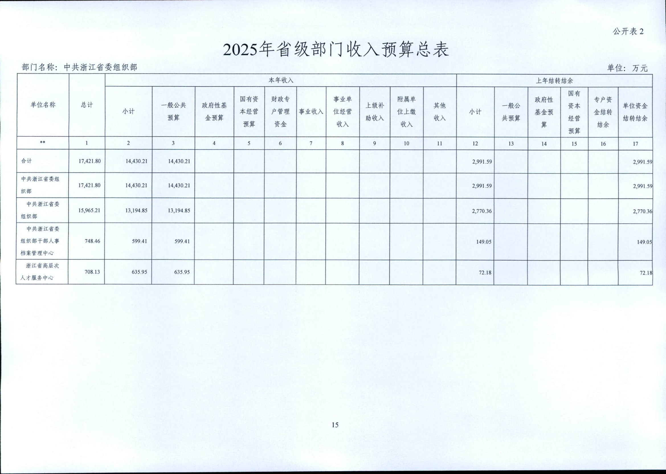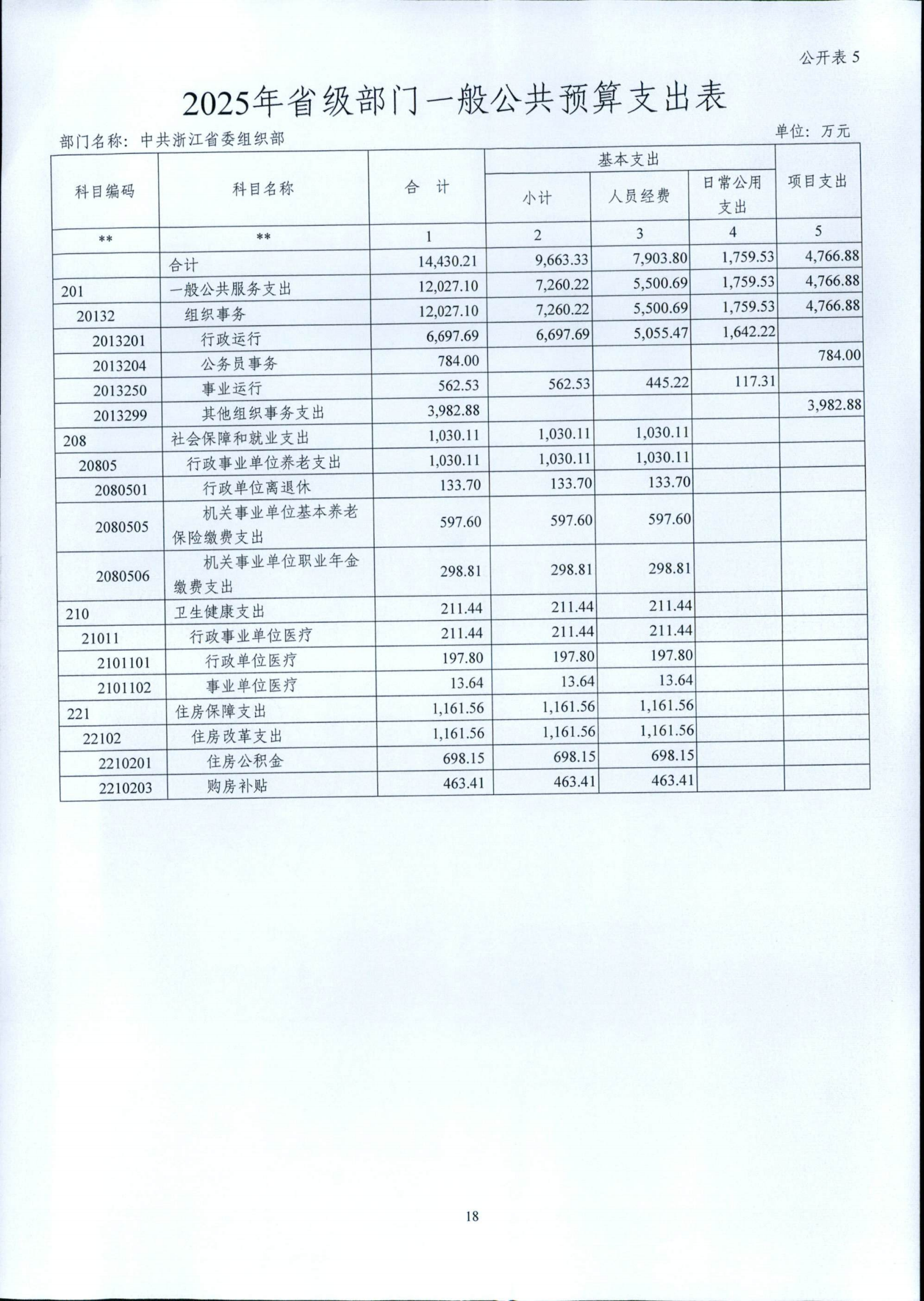 中共浙江省委組織部2025年度部門預(yù)算公開